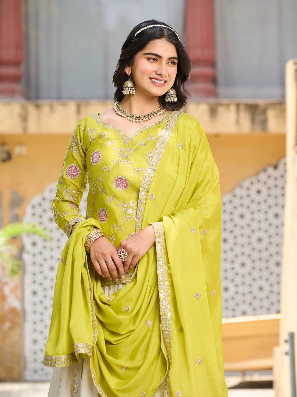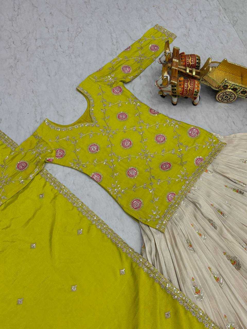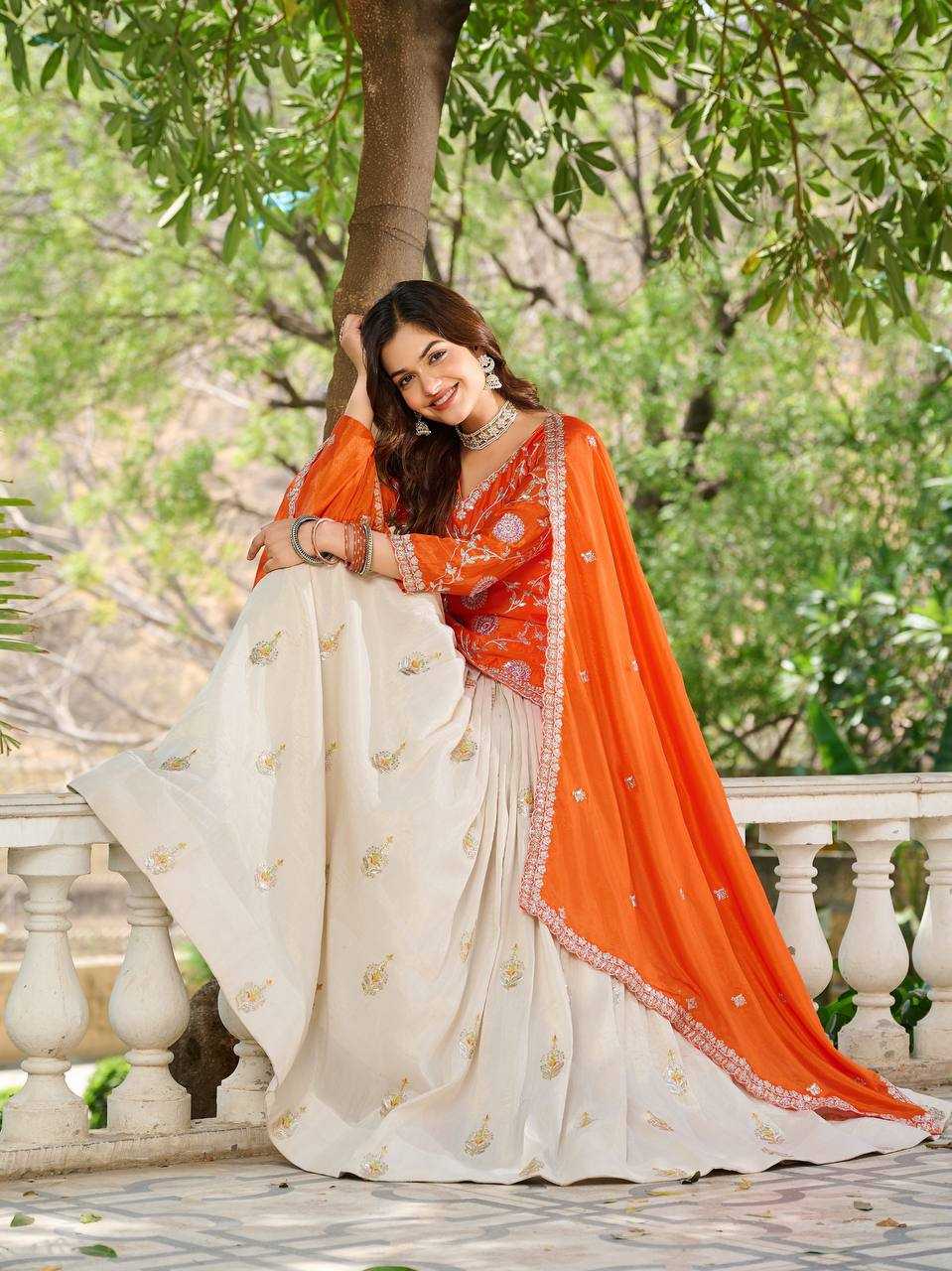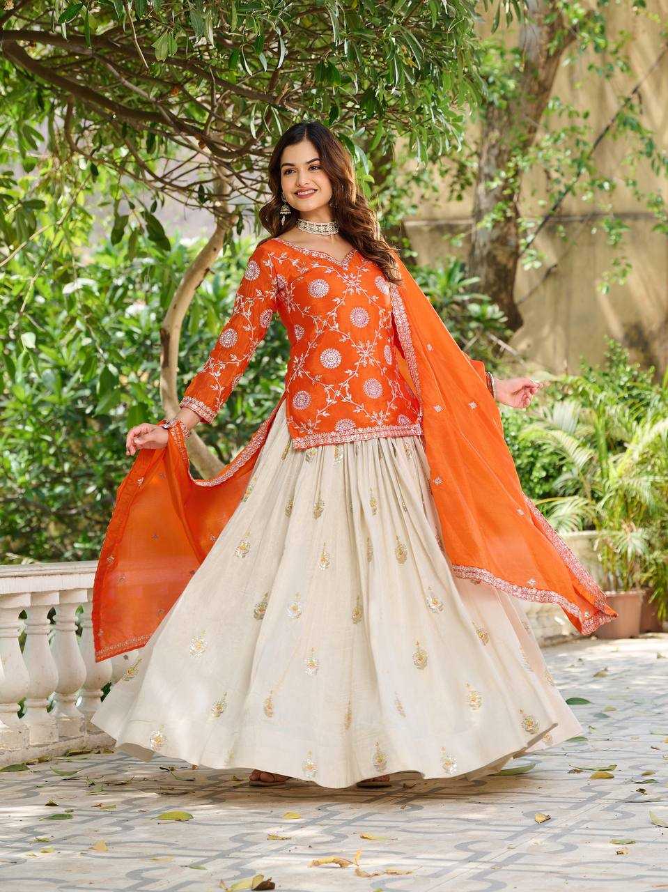 This elegant silk lehenga set is designed to offer a graceful ethnic look with lightweight comfort. The embroidered kurta paired with a pleated lehenga and matching dupatta makes it a perfect choice for festive celebrations and party occasions.
